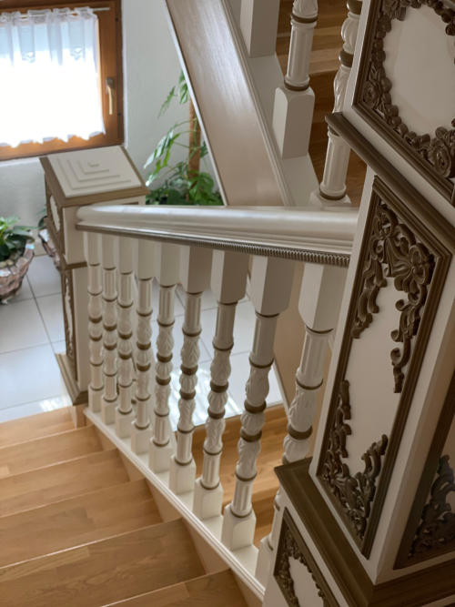 besonders geschnitzte Treppenpfosten und Geländerstäben herzustellen.